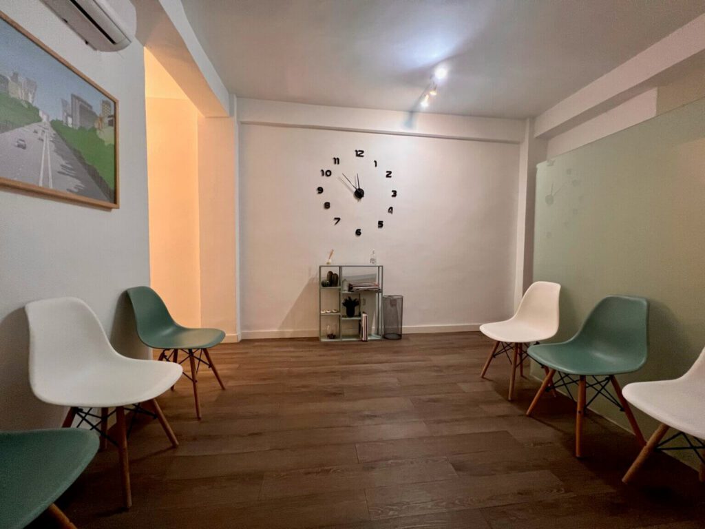 Contamos con espacios versátiles, desde amplios consultorios hasta acogedoras salas más íntimas. Todos nuestros despachos están equipados con escritorio, sofá y butaca. Disfruta de una decoración cálida y envolvente, pensada para facilitar la conexión con tus pacientes. Además, ofrecemos sala de espera y conexión wifi en todos nuestros espacios. ¡Comodidad y profesionalidad en cada detalle!